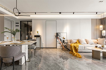 設計說明:整個空間是極具業主本人的品味與氣質的,將奇思妙想融入空間,集經典與簡奢的概念,讓木作與石材的碰撞,將光與影的完美結合,給人一種釋放真我的精致氣息。